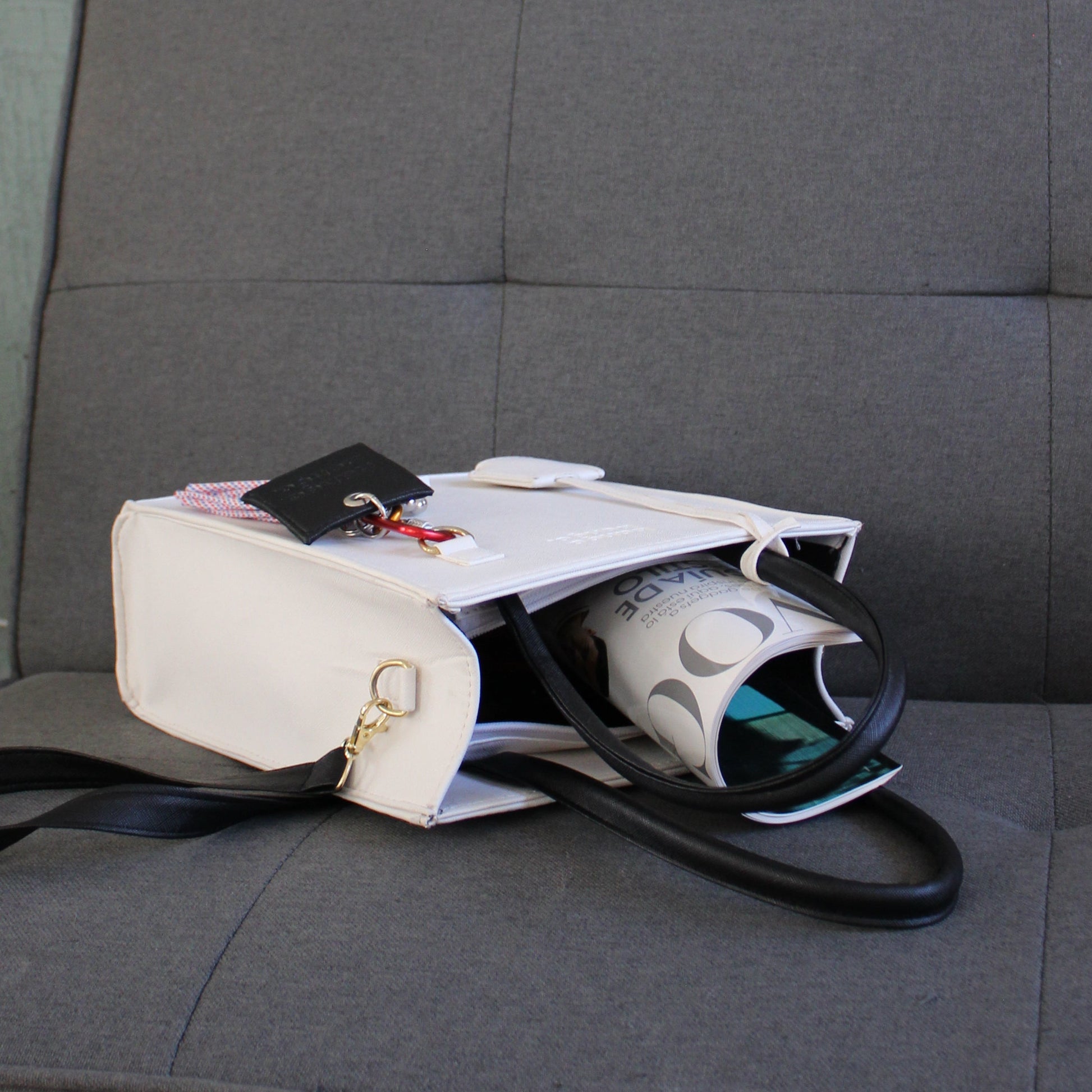 ¡Los clásicos nunca mueren! La combinación de blanco perla con el color negro hace que sea una bolsa indispensable en tu closet.